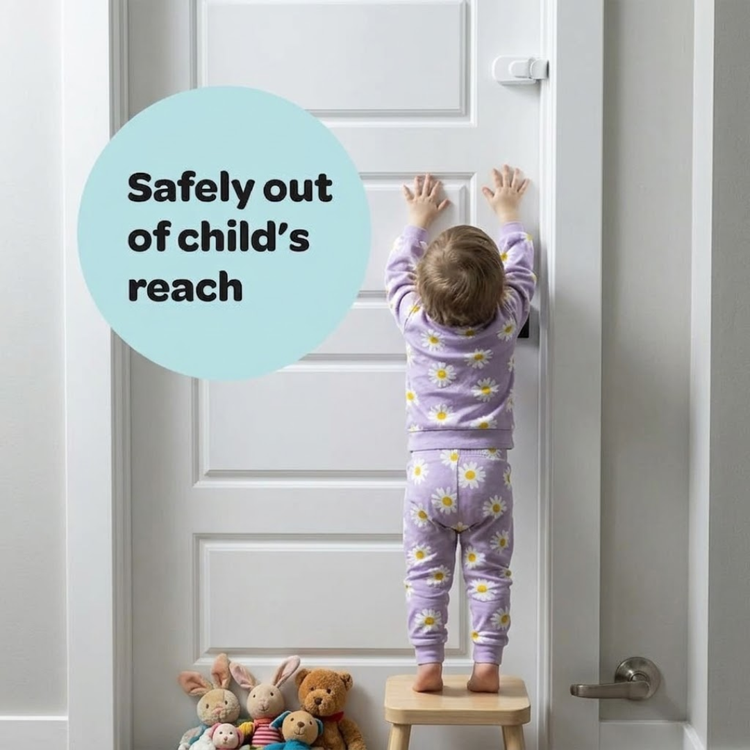 Toddlers love to explore, but not every door leads somewhere safe. This lock keeps doors fully secured, preventing access to stairs, bathrooms, and other risky areas your child shouldn’t enter. Even if they push, pull, or try to turn the handle, the door stays closed helping keep them safe as they move around and discover their world.